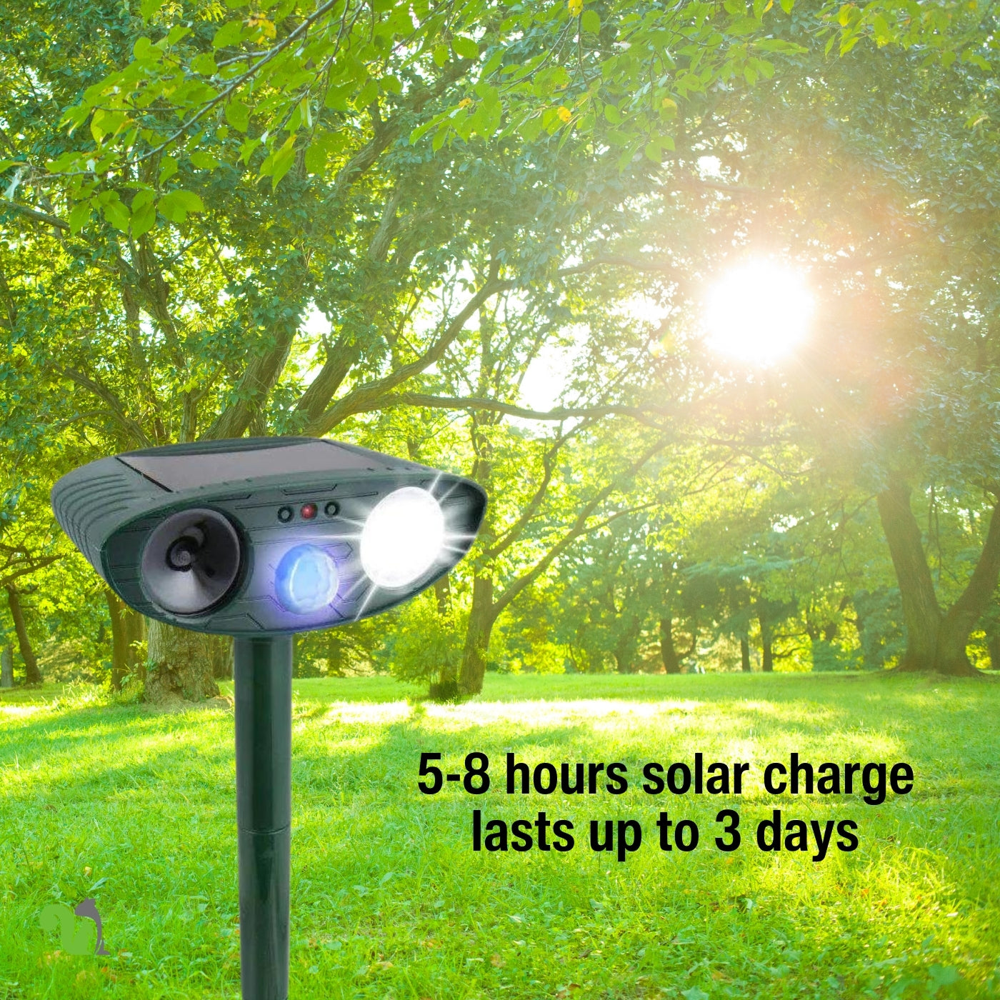 2️⃣ Creates an Invisible Barrier – Ultrasonic waves and flashing lights startle squirrels, making them uncomfortable so they leave the area.